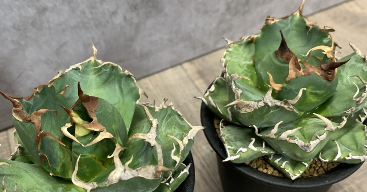 アガベ チタノタ🌵入荷です😊 まずは強くうねる鋸歯が特徴の魔丸、短く厚い葉のコンパクトなコ そして、こちらも肉厚で短く、ライムグリーン色の姫厳竜、可愛いですよね〜 カッコ良さでいくと、鋭く太い漆黒の鋸歯と、鮮やかなエメラ […]