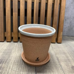 • 釉薬陶器鉢 受け皿付き ブロンズ