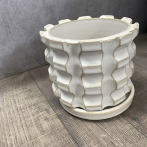 • 信楽焼き 手彫り植木鉢 ホワイト